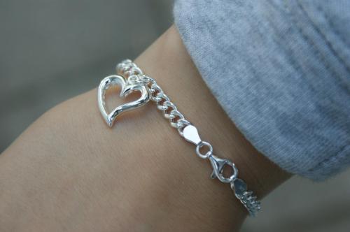 Hopeinen sydän ranneketju nuoli/t-lukolla. 4mm paksu. 19 cm pituus.